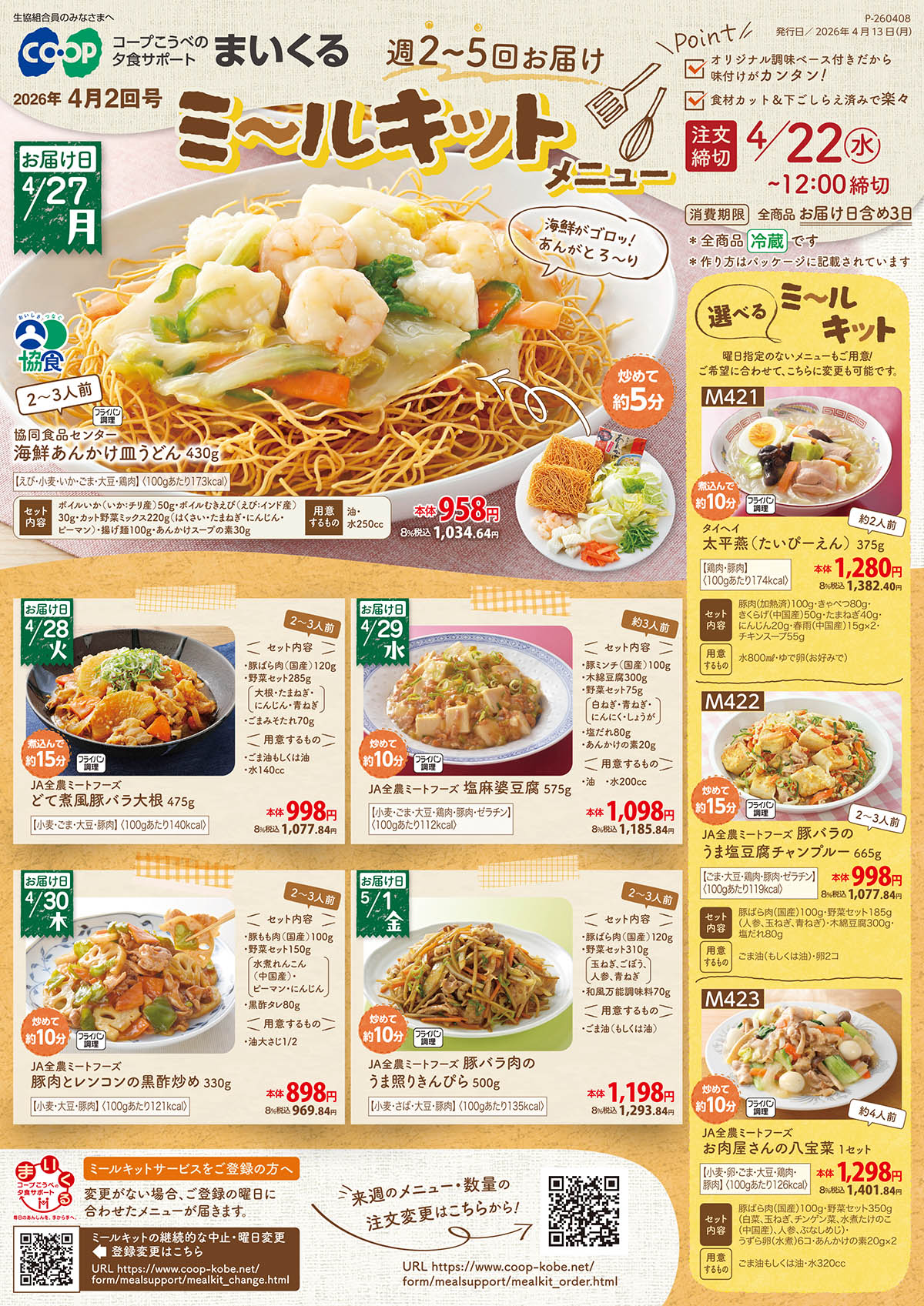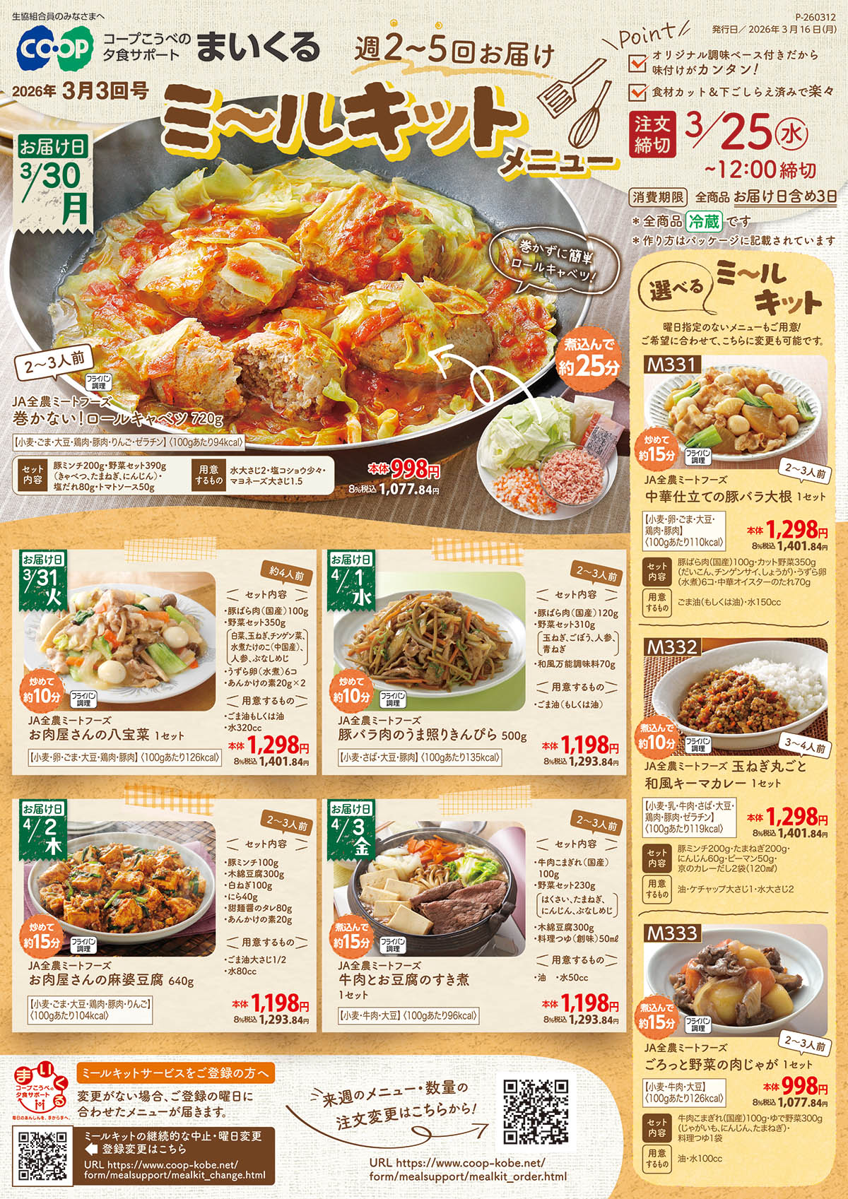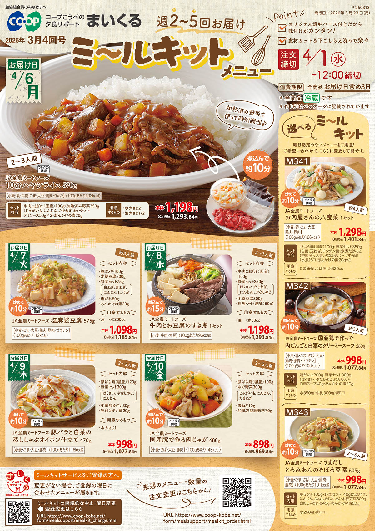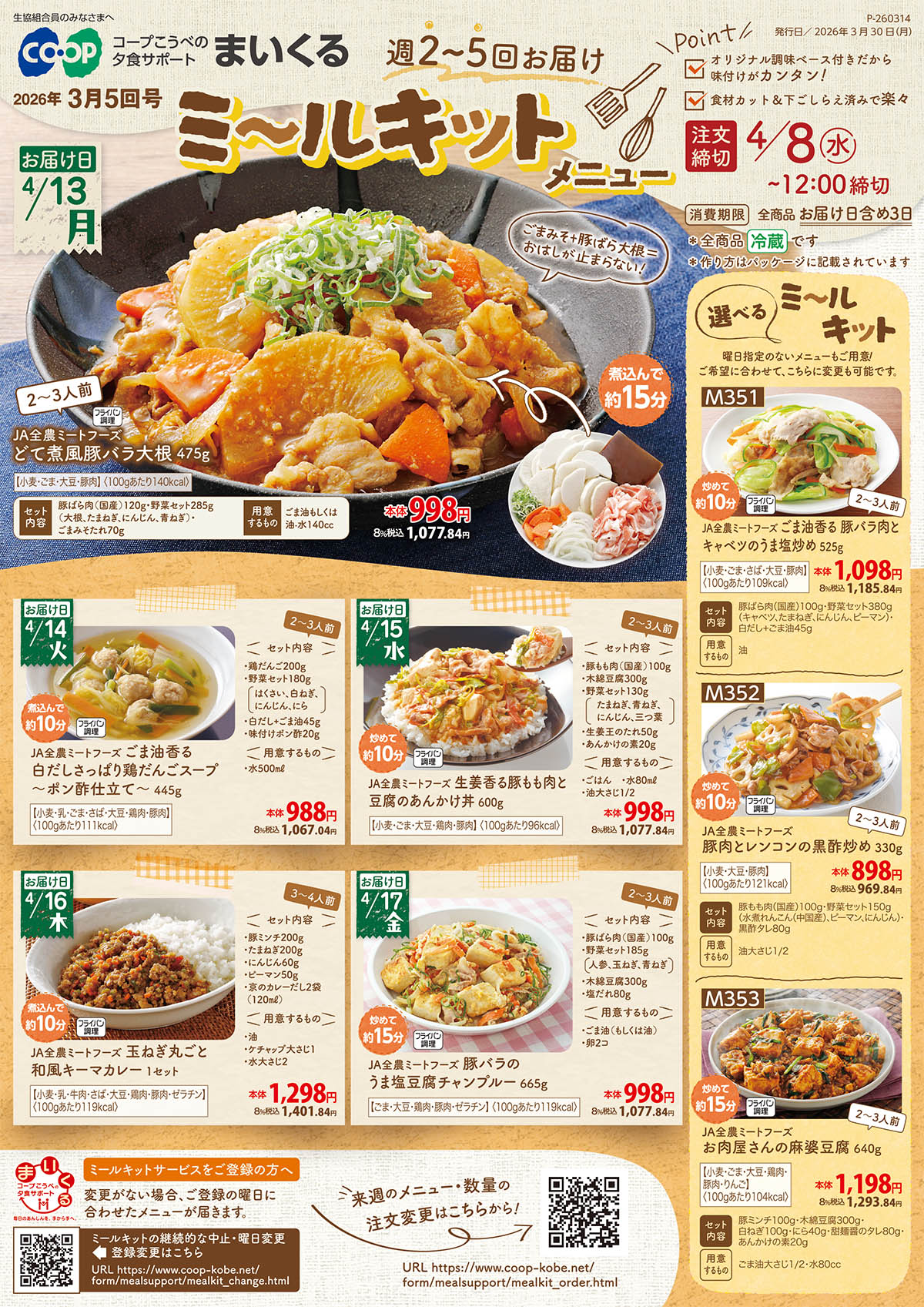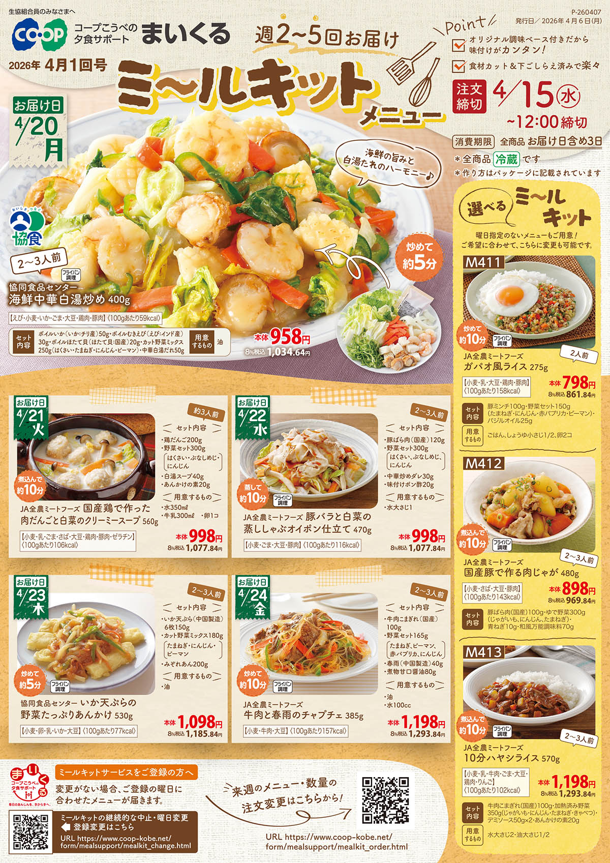 HPからご覧いただけます。また、チラシ・ミールキット注文変更フォームからもご確認いただけます。